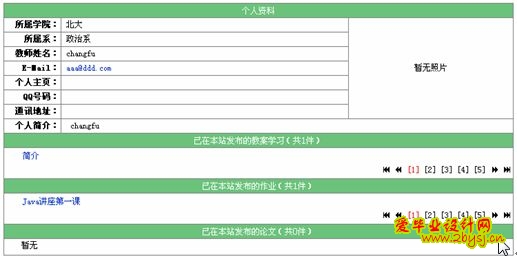 在线教育系统共分为3个模块:资料显示模块、资料管理模块和教师管理模块。