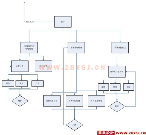 基于以上所述,我们开发了校园订餐网,该网站主要分为以下几个子系统:基本信息管理模块、菜谱管理模块,订餐和反馈管理模块以及系统管理。