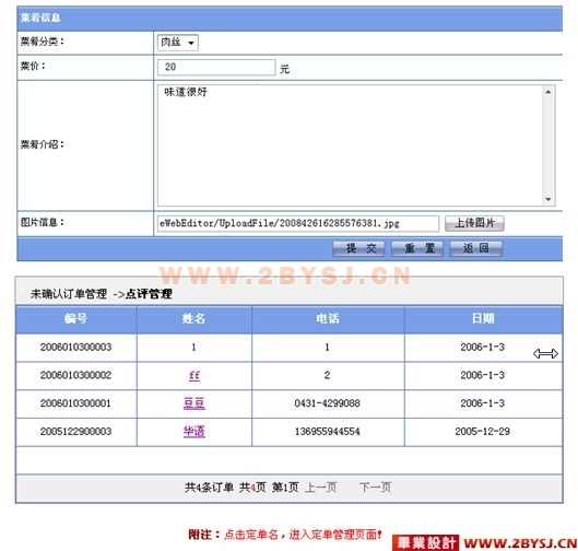 关键词:校园订餐网;asp;信息管理;前台子系统。