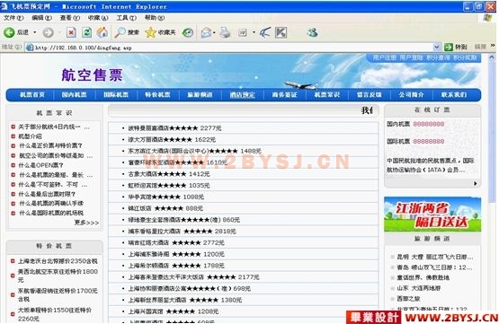 Key word WEB technology asp System design Airplane ticket predetermined system