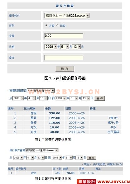 第三章详细给出了学生个人财务管理系统的实现过程。