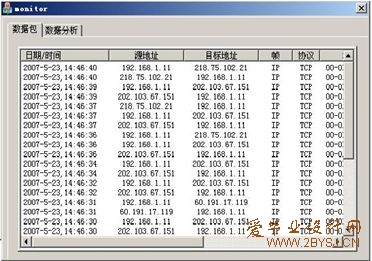 研究基于局域网网卡信息读取和过滤技术,并经过一定的通讯协议配置和分解过程,实现数据的清理,最终完成有效数据的提取和分析。(所有权: 爱毕业设计网 www.2bysj.cn QQ:306826066)