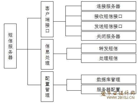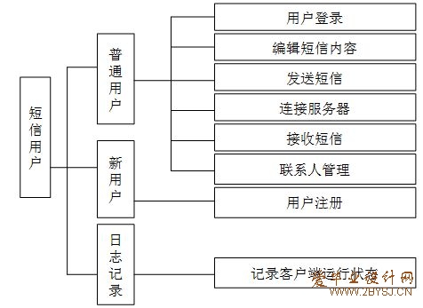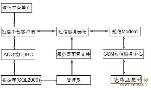 本系统分为两个大模块实现其功能,分别为客户端和服务器端。客户端用VB来实现,主要的功能有用户的注册与登录,短信的接收与发送,用户的管理,记录短信平台运行情况等。服务器端是用VC来实现的,主要有与短信客户端进行连接,短信息的处理,与串口进行通信等功能。(所有权: 爱毕业设计网 www.2bysj.cn QQ:306826066)