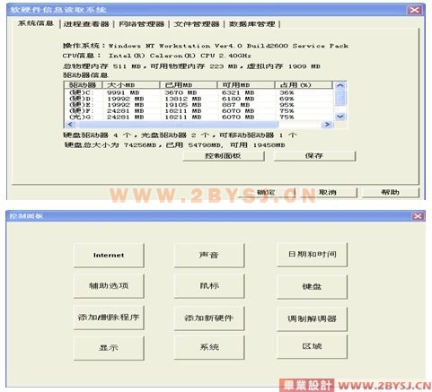 该系统通过VC模仿Windows优化大师的系统检测功能,获取系统信息。包括:信息系统总览模块、处理器与主板模块、存储系统信息模块、网络系统信息模块、线程管理模块、其它设备信息模块、软件信息列表模块,并将实现相关信息的存取功能。添加了用户注册,用户登陆,文件管理和数据库备份等功能。可以提供关机、重启、注销用户等功能。文件管理系统主要是实现了对较大文件进行分割和和合并的技术。数据库备份主要是对登陆的数据进行备份和还原。系统获取硬件信息主要是通过WMI提供的接口来访问系统的部分内核函数来调用系统信息。同时通过系统提供的API接口访问XP系统的控制面板的命令信息。因此可以在该系统中直接访问系统的控制面板。通过系统API还可以访问局域网的信息,实现了局域网IP地址的查找工作。可以及时了解局域网用户的信息。