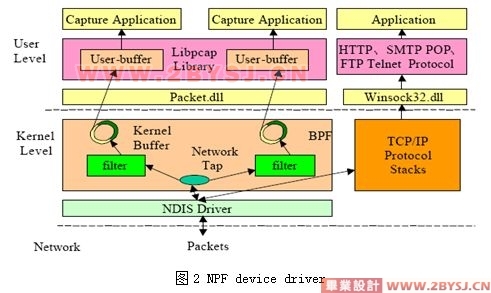 网络上数据包的捕获是入侵检测系统的基础,关键是要保证高速的抓包和低的丢包率。一方面,网络检测部分的数据源是网络上的数据包,需要经过捕获后方可以提交给分析系统;另一方面,捕获数据包效率的高低直接影响着网络探测部分的性能的好坏,如果发生丢包现象,则有可能丢掉的包就是攻击包。