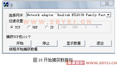 本系统包括三个基本模块,分别是数据包捕获模块,数据分析模块和数据库模块。其中数据包捕获模块的功能是:利用Winpcap控件,通过网卡设备从网络中捕获数据包;数据分析模块的功能是:主要实现数据的解析,从网络适配器中捕获到的数据的为原始数据(raw data),这些原始数据为二进制格式,必须转化为能比较好明白的格式,这就要求将这些原始数据能按照网络数据传输的具体格式来保存,主要为了能较好的读懂相关的信息,以便使用者分析;数据库模块的功能是:经过前两个模块处理后的数据,现在已经转化成了对我们有用的信息了,而这些信息不可能一直让他存放在内存中,那么就需要在数据库中建立相应的表,把这些信息存贮在这些数据库表的相应列名中,以便使用者处理、使用。