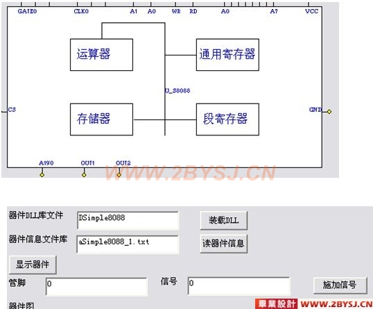 “虚拟实验平台”主要采用以“软”代“硬”和“虚”、“实”结合的设计思路,强调实用性,以最大限度地仿真真实的实验环境。主要实现了“专用实验台”的虚拟化,将它“搬”到了“微机”的显示器上,而原有在微机上的实验操作环境和方法仍然保持不变。系统还提供必要的测试仪器和工具(如示波器等),以便在实验调试时能够对运行结果进行监视或测量,如输出电平或波形,这种虚拟的测试仪器和工具也在界面和操作方面做到了尽可能的逼真。本文介绍了该虚拟试验平台的整体功能特点,主要介绍了8088CPU的结构,工作方式,以及如何用VC实现这些具体功能的编程方法。并加入了一些程序片段,对完成工作中遇到的困难也做了些总结。