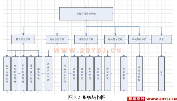This graduation design thesis which with trading company management system of analysis and design for point of departure, introduces each step of the system’s development in detail: applied background、system analysis、system design、database design and database realization. Successively analyzes various data needed and relative functions by using the function structure diagram and E-R diagram in the system design. Emerged each function mold of the system and the design of database form and window body needed in detail in the system detail. In the realization of system ,the thesis displays the source codes that realize the function of controlling every function mold in the window body and the method of realization. It returned in the text to the main function of this system to circulate interface diagram.