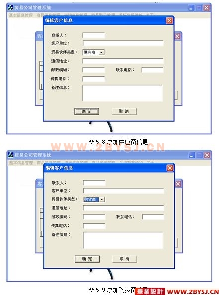 This graduation design is to aim at currently small scaled merchandise trading company of enter goods, sale etc. take handicraft operation as mainly manage means and the circumstance of information-based degree is low to design a trading company management system.The main function of the system is to manage the information of supplier, customer, merchandise, enter goods and sell, and to realize the insert ,search and renewal operation to the above-mentioned information. This system adopts ODBC contact database. The procedure interface of the stage application adopts VC++ as development tool, the backstage database of system chooses to use SQL Server 2000.