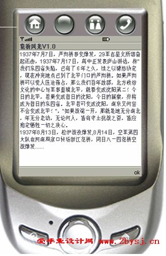 这款游戏的名字叫《览桥风光》。J2ME(Java 2 Micro Edition) 是近年来随着各种不同设备,尤其是移动通信设备的飞速发展而诞生的一项新的开发技术。它定位在消费性电子产品的应用上,对设备的智能化、多样化,提供了革命性的解决方案,并因其“Write Once, run anywhere”的JAVA特性而提高开发的效率。