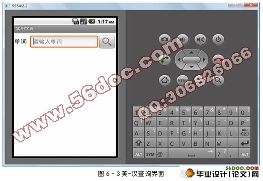 基于Android的电子词典的设计与实现(含开题报告,毕业论文15000字,程序代码)[摘 要] 随着智能手机的应用普及,手机软件的使用必然得到较好的发展。而Android操作系统是目前最为常见的手机操作系统之一,加之在校学生英语学习中对单词记忆和查询