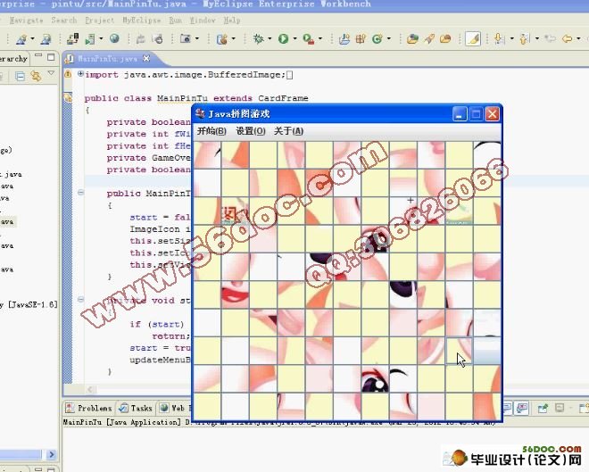 基于Java拼图游戏的设计与实现(含录像)摘 要本拼图游戏是基于J2SE平台开发的,它是一个Application,它的游戏规则和诺亚舟里的拼图游戏是一样的。这个游戏将一张大图切割成N张小图,然后在其中 任意挑出N-1张小图,使它们随机出现在N个位置。通过鼠标或键