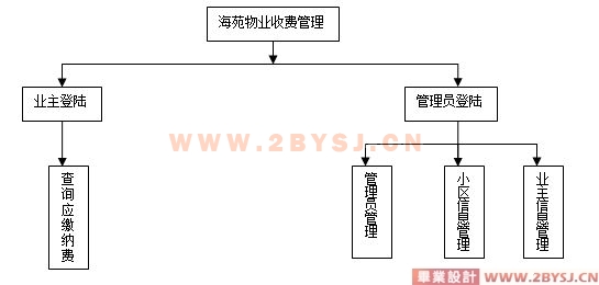 海苑物业收费管理系统为基于B/S架构的物业信息管理系统。其中主要的功能分为以下六个方面: