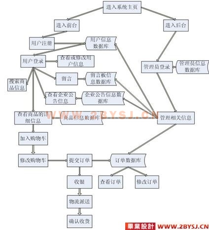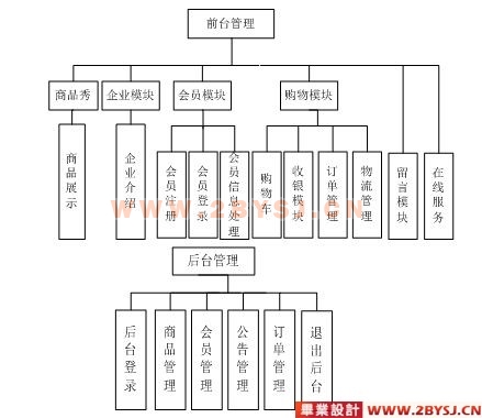 前台功能分为企业模块商品秀模块、会员注册、会员登录、购物车模块、收银模块、订单管理、物流管理、留言板模块几部分组成。