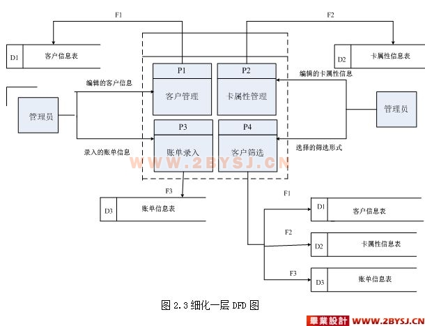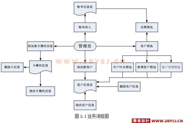 该系统包括四个模块: 客户管理模块;卡属性管理模块;帐单录入模块和客户筛选模块。本节将说明四个主要模块的功能。