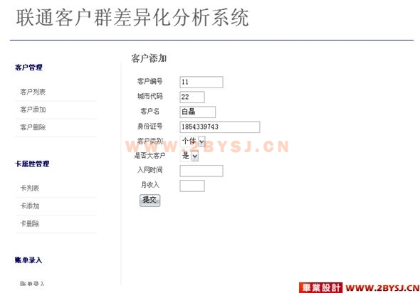 Key words: customer management, Unicom customers difference analysis system, JSP.