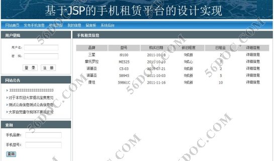 | 设计名称:JSP手机租赁管理系统 |