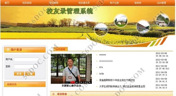 开发技术:JSP+servlet+JAVAbean+sql2005 系统功能: 摘要: 再Internet飞速发展的今天,互联网成为人们快速获取、发布和传递信息的重要渠道,它在人们政治、经济、生活等各个方面发挥着重要的作用。因此网站在Internet应用上的地位显而易见,它已成为政府、企事业单位信息化建设中的重要组成部分,从而倍受人们的重视。本文介绍了构建校友录网站的技术和实现方法,重点讲述了注册登陆,留言板,班级相册等几个主要功能的实现。网站页面结合JSP技术来设计,网站图片、动画设计采用Potoshop7.0,网站采用的数据库是SQL 。 关键词:校友录 JSP SQL |