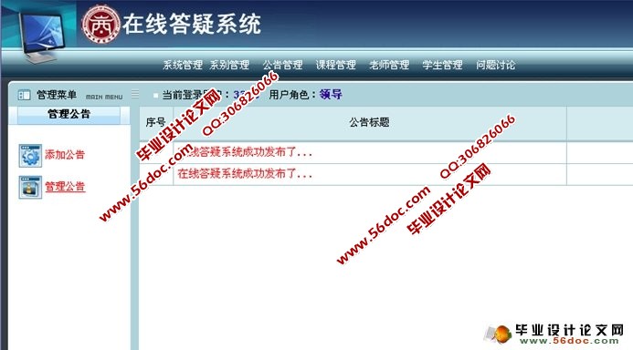 在线答疑系统主要实现系统管理、系别管理、公告管理、课程管理、老师管理、学生管理、问题讨论、等功能,充分利用计算机网络技术,改变传统的操作方式进行管理,实现了网络化管理模式。