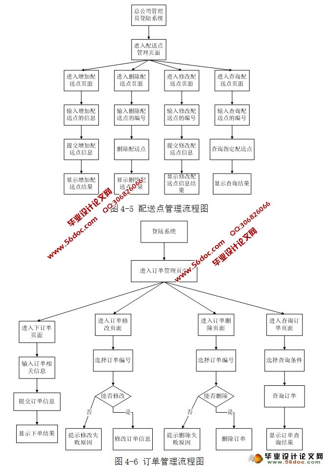 订单管理:订单管理包括下订单、订单修改和删除。下订单由用户或配送点管理员完成,在配送点收到客户货物之前可以修改或删除订单。