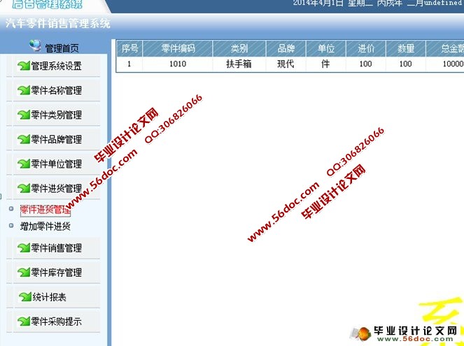 汽车零件(配件)销售管理系统的设计与实现(JSP,SQL)(任务书,中期检查报告,外文翻译,毕业论文15000字,程序代码,SQLserver数据库,答辩PPT)
