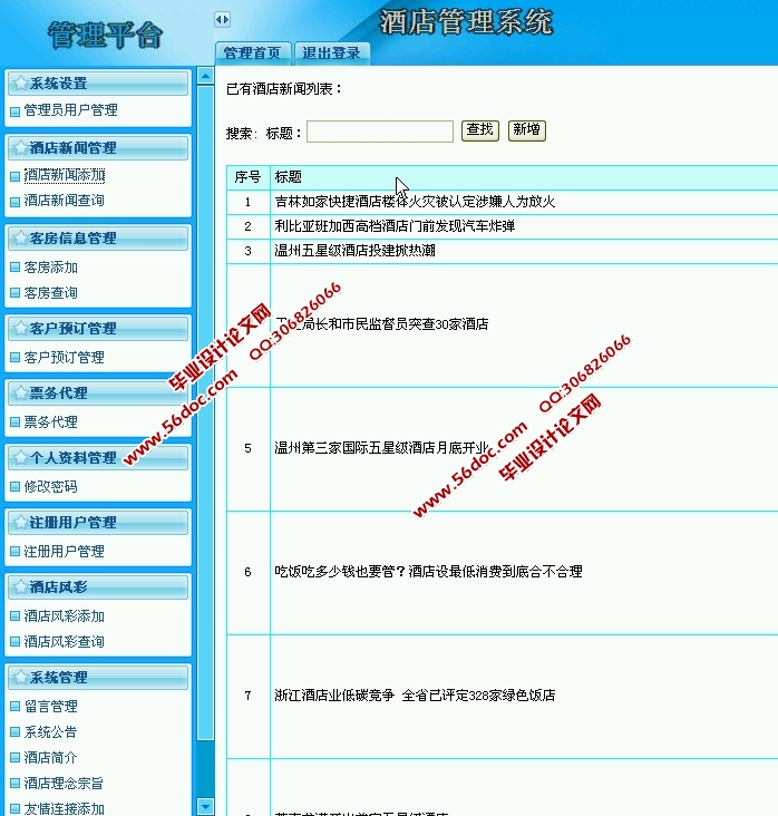 3..用户:查看新闻,酒店风彩,在线留言,还可预订客房.等.