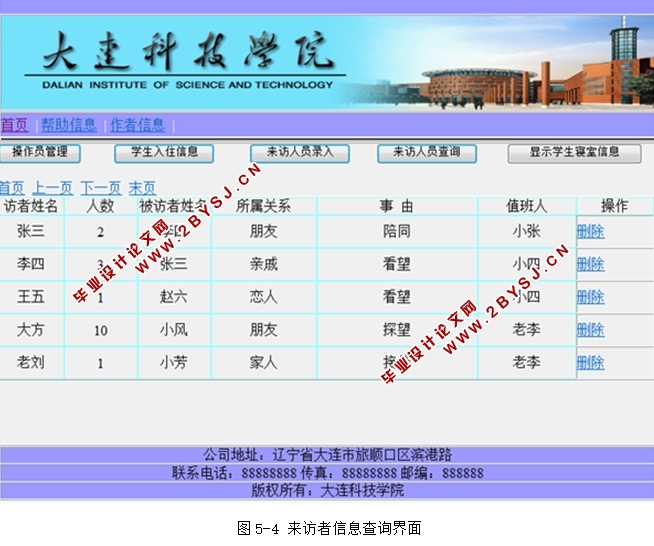 查询来访人员生信息:按照学号或者姓名对学生信息查询。