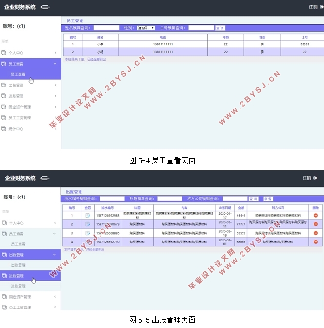 2. 出账管理:财务可以对出账信息进行添加、查看或删除。