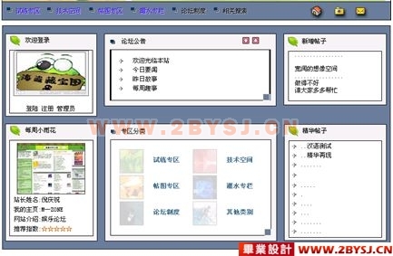 摘 要本系统是采用jsp+servlet技术开发设计的论坛网站系统,基于MVC的设计模式,结合JSTL+EL以及AJAX等的页面显示技术,使JSP页面中无JAVA代码的显示,保证了代码的安全,同时简化了JSP页面的编码。系统实现了网站信息的动态发布,使得对信息的管理更加及时、高效,提高了