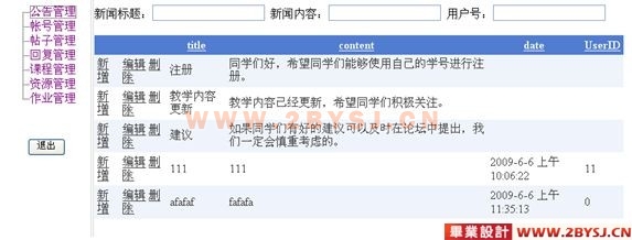 3.论坛交流模块:当学生遇到问题时,可通过在论坛发帖来与老师或者其他学生进行交流。