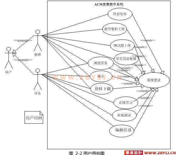 本课题的基本内容是开发一个基于Web的关于ACM 竞赛的网络教学系统,意在构建一个B/S模式的教学模型。本系统主要分为前台和后台两部分。