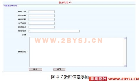 教师信息管理主要实现教师用户信息的维护,包括教师信息的添加、编辑、删除等。