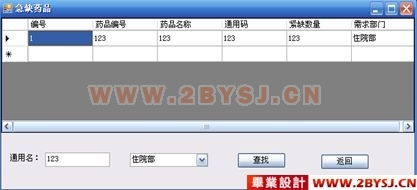 本系统是医院管理的重要组成部分,与门诊部管理,住院部管理以及系统管理共同组成一个完整的医院管理系统,并且为了完成医药模块的具体功能,对其他模块也做了相应的编写。