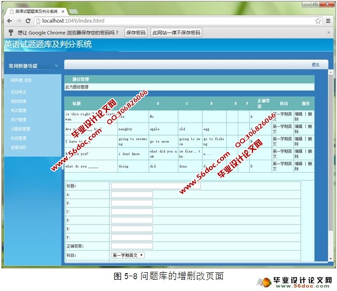 英语试题题库及判分系统的设计与实现(asp.NET,SQL)(含录像)(任务书,开题报告,毕业论文10000字,程序代码,SQLserver数据库)