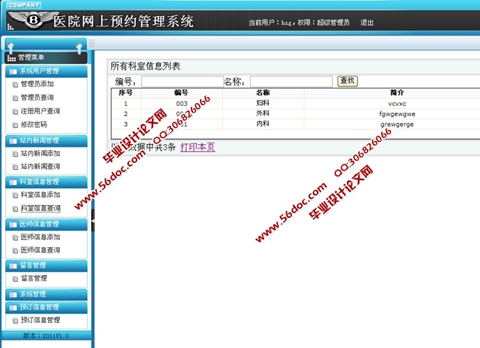 通过系统功能分析,针对医院网上预约管理系统,总结出如下的需求信息: