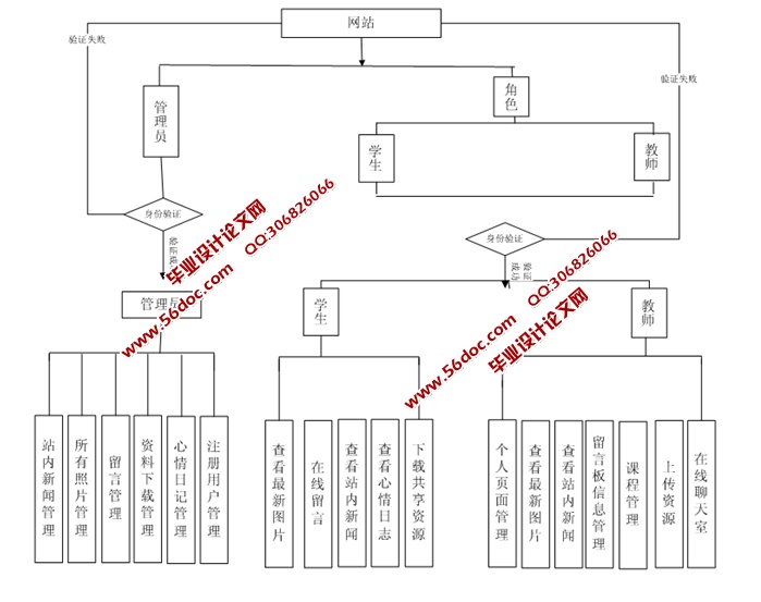 教师具有:浏览新闻、网上聊天、参与留言、修改个人信息功能和权限。
