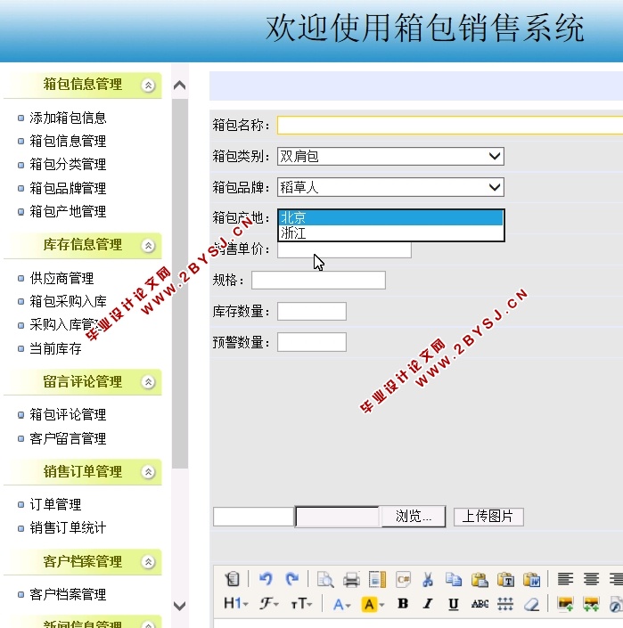箱包(肩包,手提包)销售系统的设计与实现(asp.NET,SQL)(含录像)(开题报告,毕业论文14700字,程序代码,SQLserver数据库)