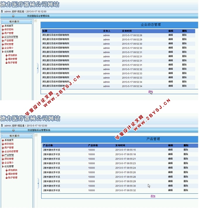 本课题实现了德力医疗器械公司网站的基本功能,主要包括以下内容: