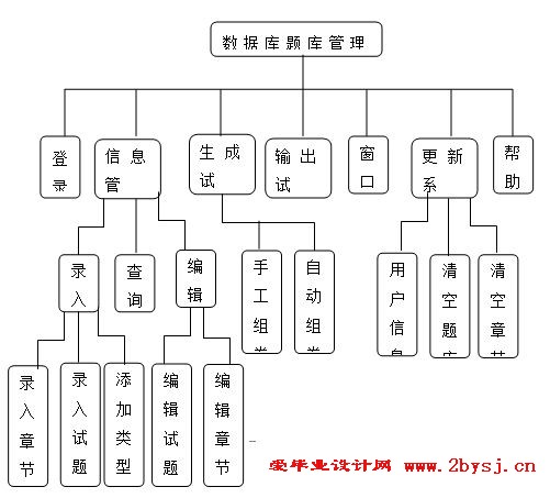 数据库题库管理系统包括六个模块,实现对题库的录入、编辑、查询和自动生成试卷、手工生成试卷、输出试卷等功能。同时还增加对所用教材的管理如教材的录入、编辑和查询,功能的扩展如试题类型的增加和系统的更新。达到了开发数据库题库管理系统的目的。