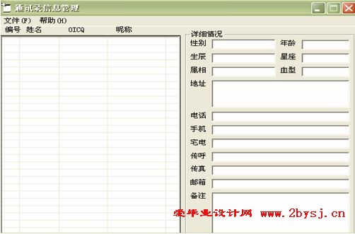 本通讯录信息管理系统用计算机管理电子通讯录的一种计算机应用技术的创新,在计算机还未普及之前通讯管理都是由联系人采用名片,笔录手工记帐的方式来操作的.现在一般的通讯录管理都是采用计算机作为工具的实用的计算机通讯录管理程序来帮助人们进行更有效的通讯录信息管理。通讯录管理系统是典型的信息管理系统(MIS),其开发主要包括后台数据库的建立和维护以及前端应用程序的开发两个方面。对于前者要求建立起数据一致性和完整性强、数据安全性好的库。而对于后者则要求应用程序功能完备,易使用等特点。