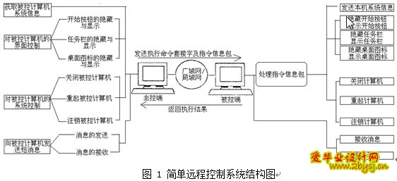随着现今社会计算机的广泛普及以及网络的快速发展给远程控制系统带来了广阔的用武之地,人们可以通过简单的终端机完全的控制网络另一端的被控机,从而完成强大的控制功能,获取被控机的任何信息,这种方式被称之为远程控制。