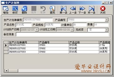 生产部门如果没有专业化管理的工具,都会受到如周期、库存、人力、发货、废品、引入新产品和满足客户要求等问题的困扰。如果没有一个有效的计划,生产部门对以上这些问题以及其他一些类似的问题是很难回答的。由于缺乏公认的专业工具和知识体系以及其有效系统,也很难准确的衡量生产部门的工作业绩。由此可见,生产管理系统的引入迫在眉睫。在应用生产管理系统的环境下,在制定销售与运作规划时先要通过资源计划来估算为生产一定数量的某类产品所需的资源,以保证销售与运作规划的合理性。(所有权: 爱毕业设计网 www.2bysj.cn )