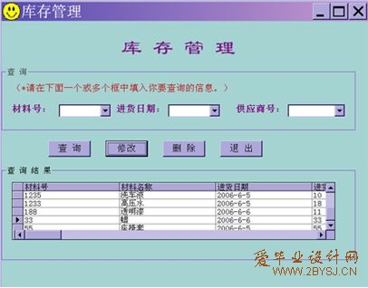 此软件以Access 2000作为后台数据库,在Visual Basic 6.0平台下开发的,需要在Windows操作系统下运行。(所有权: 爱毕业设计网 www.2bysj.cn )