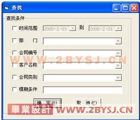 合同信息的查找。能够对合同的具体信息进行查找。可以提供按时间范围查找、按所属部门查找、按合同编号查找、按客户名称查找、按合同类别查找、按模糊条件查找。
