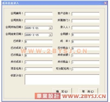 收款。可以对合同的收款的情况信息进行管理,包括对收款信息的录入、删除、修改、保存等。