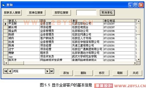 b)按照关系数据库的理论和方法,对大客户管理系统数据库进行了设计‘并对系统的模块划分、与现有系统之间的接口等进行了详细的设计,提出了整体的系统解决方案,并结合电信的实际予以实现。