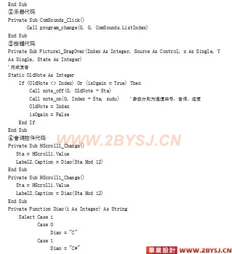 MIDI文件并非像wav或mp3那样量化的纪录乐曲每一时刻的声音变化,它记录的是如“音乐在什么时刻,使用什么乐器,以什么音符开始,以什么音调结束,加以什么伴奏”等等这样的信息,所以MIDI文件本身是个发音命令,MIDI文件本身只是一些数字信号而已,不包含任何声音信息。而wav是把声音的波形记录下来,将这些模拟波形转换成数字信息。这次做的这个MIDI键盘的设计是能够利用VB的一些控件做出一个类似键盘的东西,点击上面的键能够发出类似于钢琴的声音,而且还可以模仿其他乐器发出声音,并且还可以用各种调子来弹奏并发声