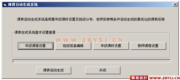 In this paper, the design is automatically generated curriculum system, which is the school management system is a major component of the effect of all classes, teachers, courses for effective management. Through the system can not only on the classes, teachers, courses for fast and efficient management of a more optimized Timetable, but also information on the classes, all teachers of information for quick inquiries, and are free to add, modify, delete, print and so on, so that operators can quickly carry out the curriculum of effective control and management. In this paper, from the grade, class and the teacher introduced the information management system development from the background of the system design and design methods and system problems and applications are discussed.