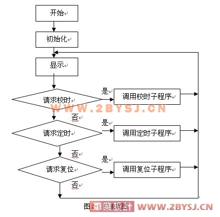 装置中软件设计部分包括一个主程序、四个模块程序和二个子程序,各自执行自己的功能,完成定时,调时等设操作。本文从整体到部分详细介绍了数字钟的设计,在比较重要的部分进行了详细的论述,并且给出了程序框图及说明。