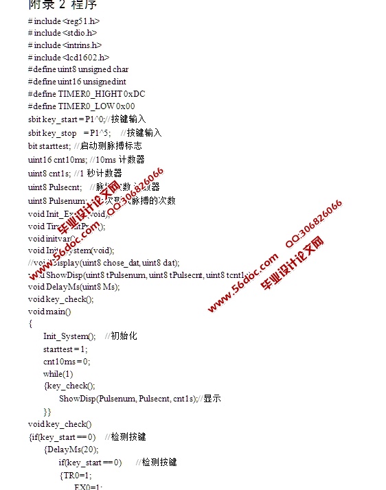基于单片机设计的心率测试仪设计(含电路图,程序)(课题申报表,任务书,开题报告,中期检查表,外文翻译,论文21000字,程序,答辩PPT)